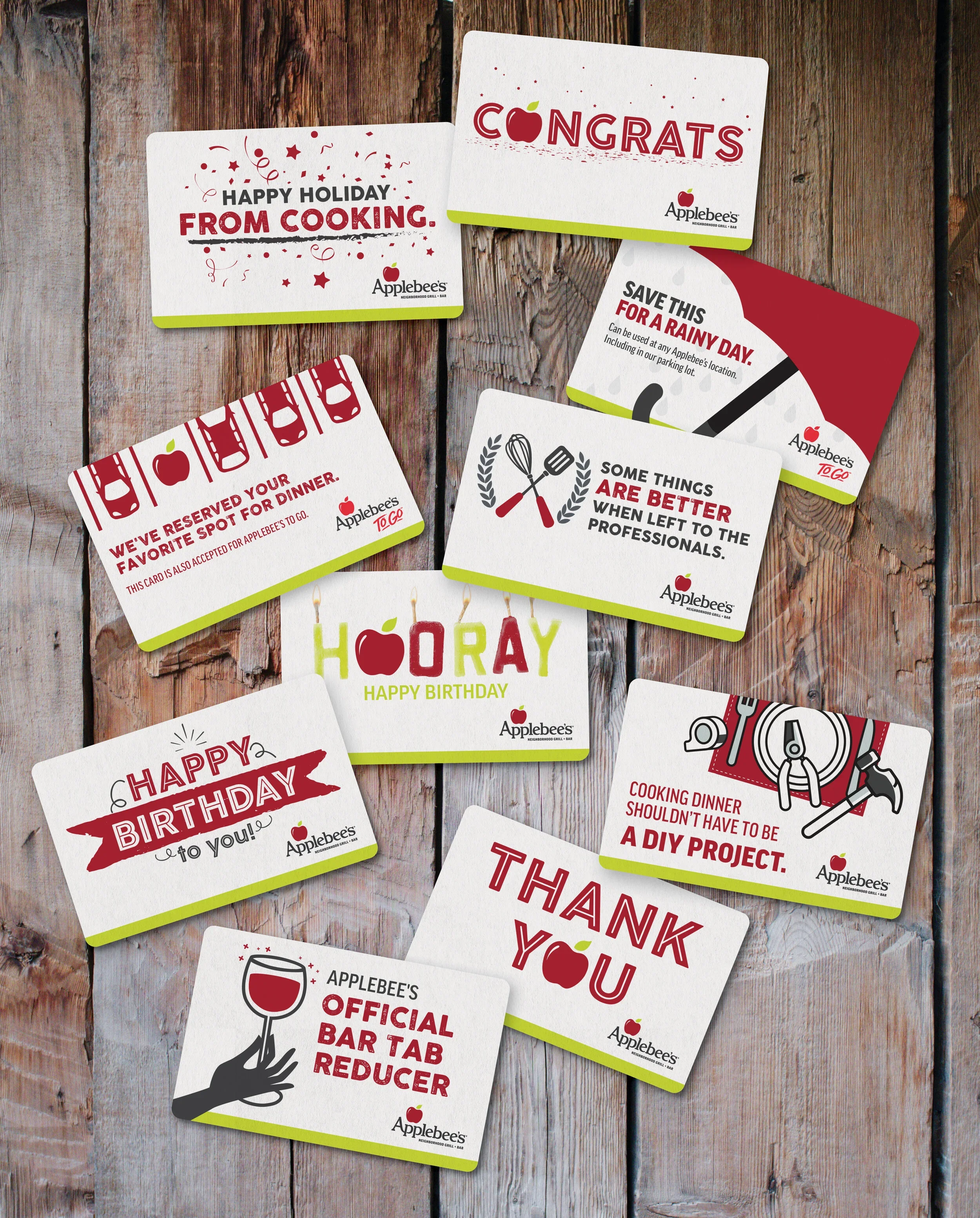 You see, Applebee’s needed new Point of Purchase printed materials, like gift cards for general use, occasions, and holidays. And Mint? Well … we wanted to design fun stuff.