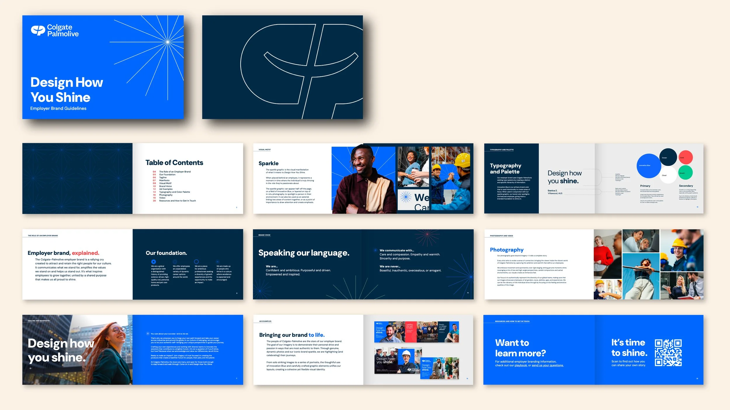 After in-depth interviews, focus groups, and competitor analysis, we found that our best bet would be to lean into the exceptionalism that can be found in C-P employees. We developed the “Design How You Shine” tagline and built a flexible system that centers career growth, global mobility, and the impact employees make every day. The emphasis on shine ties back to the products that Colgate-Palmolive makes — everything from personal care to cleaning — while encouraging current and prospective employees to push themselves and dare to be brilliant.
